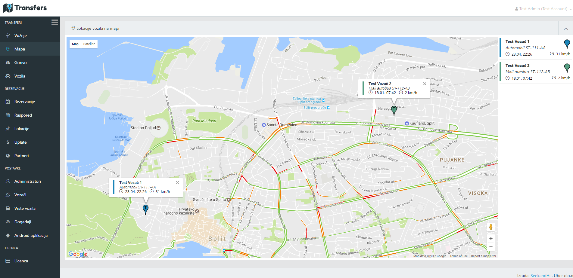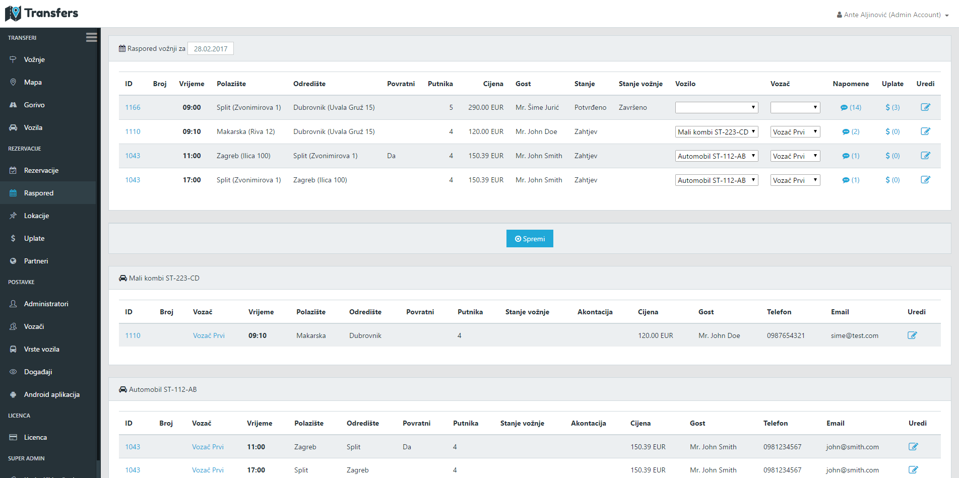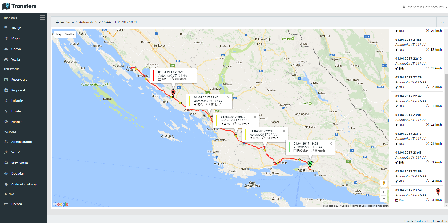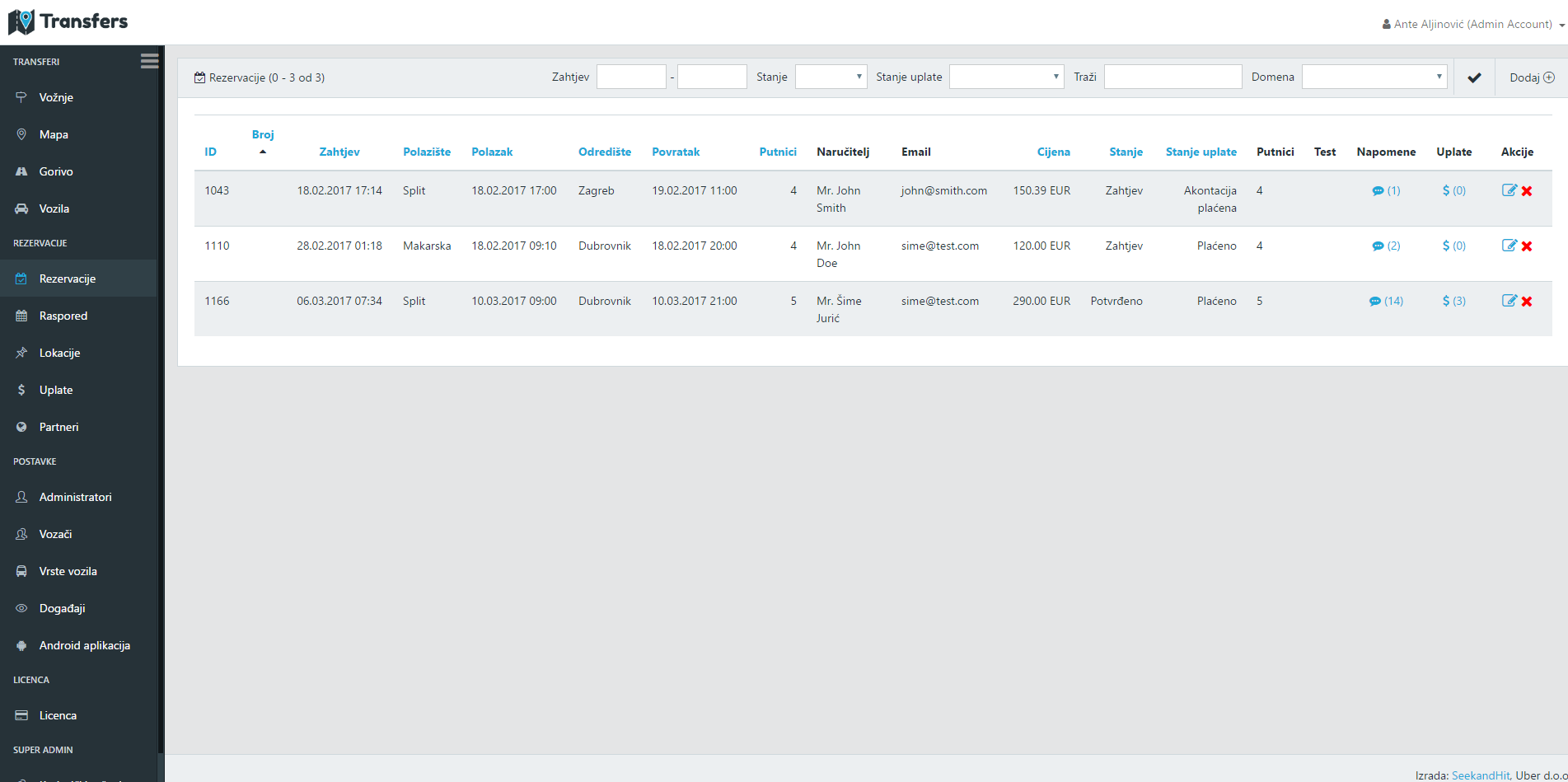 Dvosmjerna komunikacija sa vozačem te pregled svih uplata za pojedinu rezervaciju.